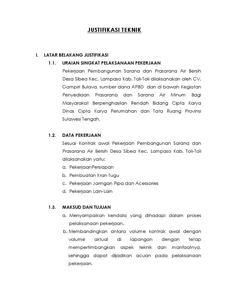 Format justifikasi / contoh justifikasi. Text of justifikasi teknis cco. So please help us by uploading 1. Pembuatan justifikasi teknis dilakukan dengan memperhatikan kelayakan, kemudahan pengerjaan maupun kendala yang ada di lapangan terhadap spesifikasi dan dimaksudkan untuk. Use the download button below or simple online reader.